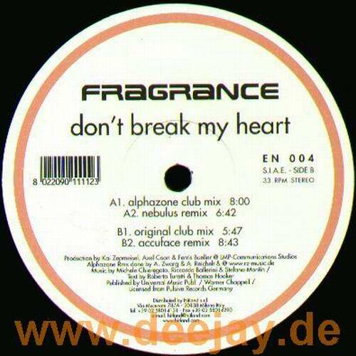 Vol. 1 Germany - Pulsive 07. Fragrance - Don't Break My Heart (Alphazone Radio) (3:25) (different melody than the final Alphazone Remix) |
